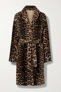 Reversible belted leopard-print shearling coat