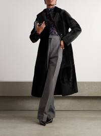 Each one of Yves Salomon's luxurious pieces is realized in the label's Parisian atelier. This coat is tailored from black shearling that's naturally insulating and can be worn to show off the plush texture or its smooth reverse, depending on your preference. It has a longline shape and notched lapels.