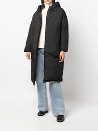 reversible hooded down parka black down-feather filling quilted panels long sleeves front zip fastening Made in France Composition Lining: Feather Down 100%, Polyester 100% Outer: Polyester 100% SIZE & FIT Model measurements Height 5 ft 11 in(1.8 m) Bust/Chest 33.07 in(84 cm) Hips 37.4 in(95 cm) Waist 25.19 in(64 cm) FittingInformation This piece fits true to size. We recommend you get your regular size Cut for a loose fit Made with a mid-weight non-stretch fabric Washing instructions Hand Wash