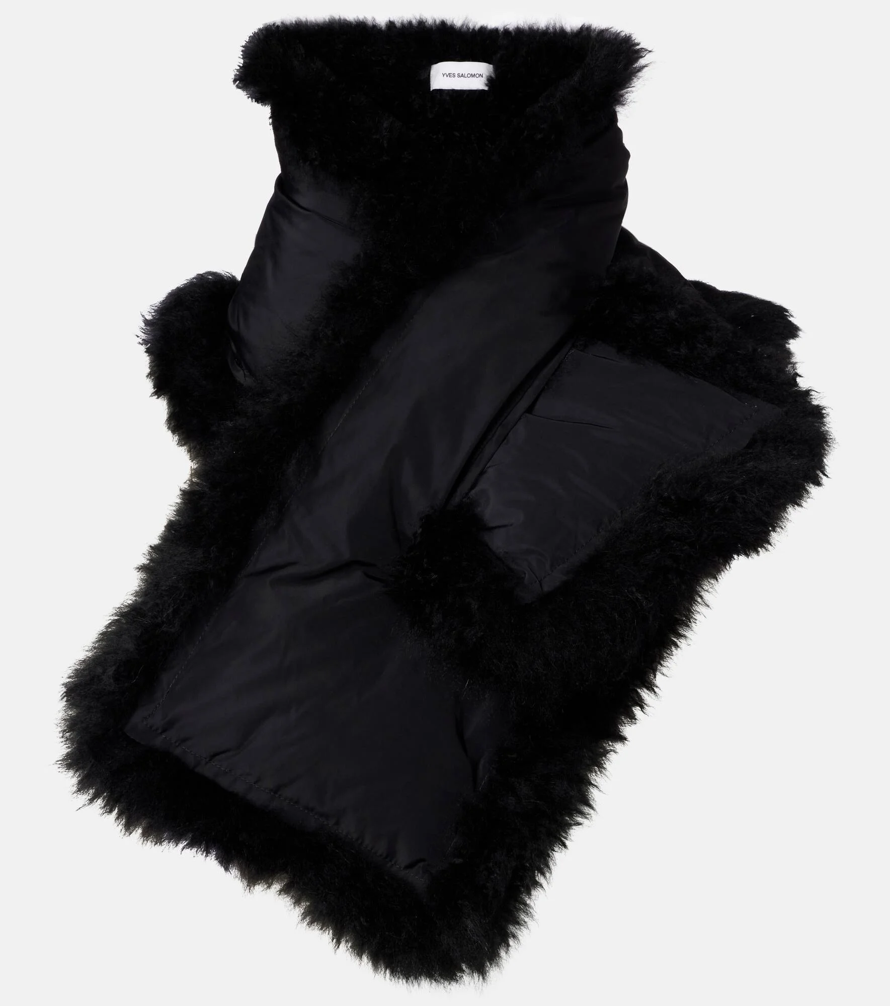 Rooted in a 100-year history, Yves Salomon's exquisite French craftsmanship produces winter wear that blends function and elegance. This down-filled scarf is crafted from shearling and features a technical fabric construction on the reverse side. Product Details - Material: 100% shearling - Care instructions: specialist clean - Made in France - Designer color name: Noir - Item color: black - Material II: 100% polyester - Filling: 90% down, 10% feathers - Contains non-textile parts of animal origin - Item number: P01098745 Size & Fit - Length 102cm-40" - Width 18cm-7"