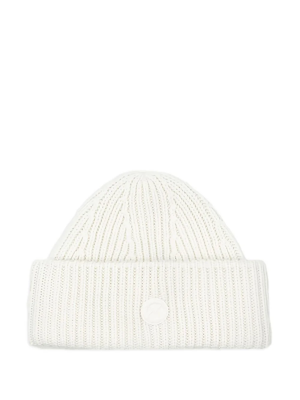 ribbed-knit beanie Highlights - Off-white - Ribbed knit - Folded brim - Circular logo patch - Wool-blend Imported Composition Wool 70%, Cashmere 30% Washing instructions Read Manufacturer Guidelines