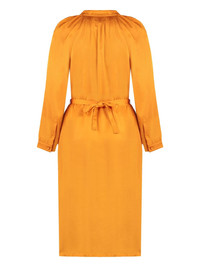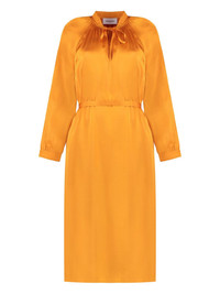 satin midi dress Highlights - Amber orange - Detachable and adjustable waist belt - Gathered tie neck - Buttoned cuffs - Long raglan sleeves Made in France Composition Viscose 100%