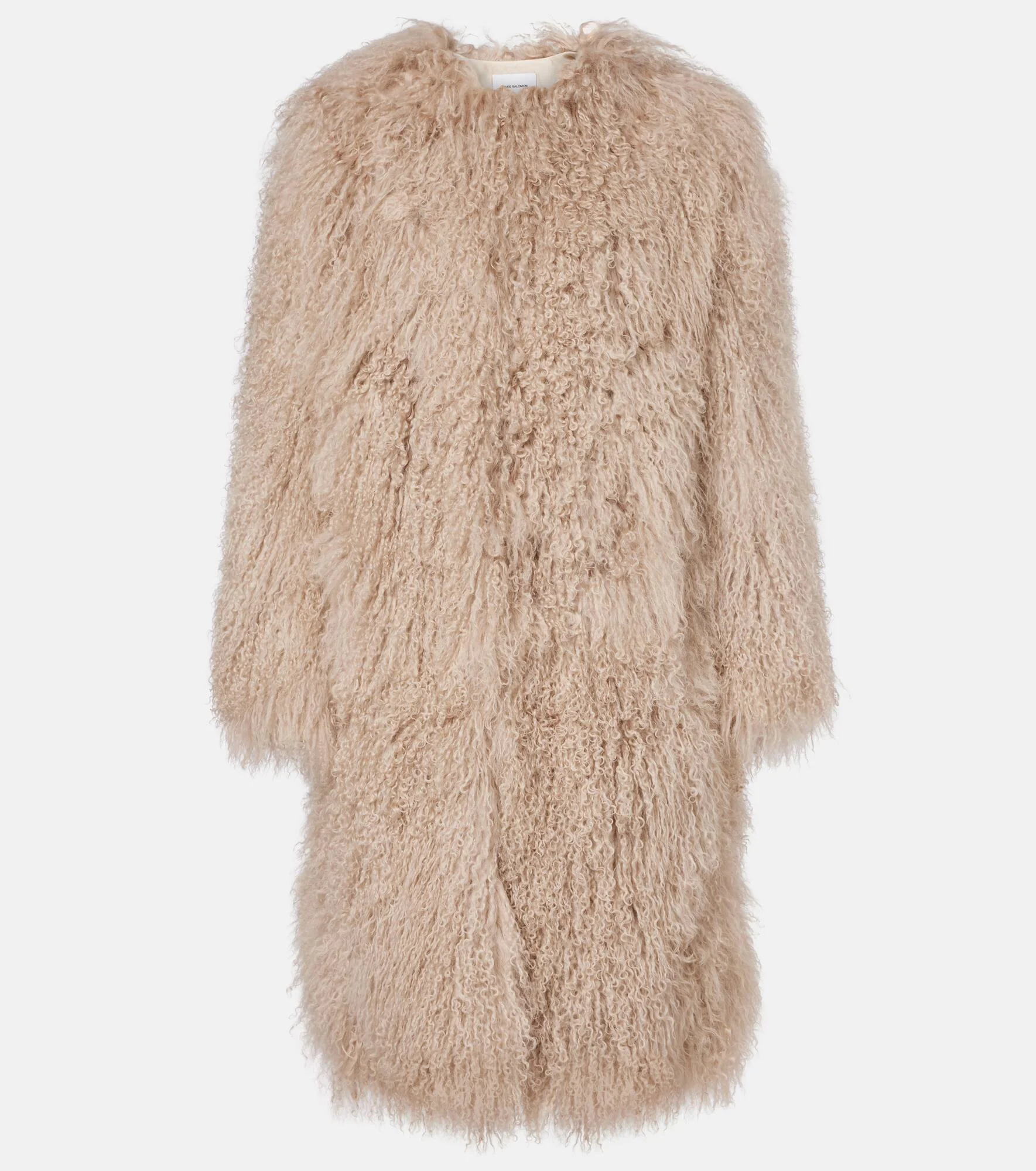 This Yves Salomon coat combines Parisian elegance with luxurious warmth for the cold-weather season. Crafted from plush shearling, this style features side slit pockets and a discreet hook closure. Product Details - Material: 100% shearling - Care instructions: specialist clean - Made in France - Designer color name: Ficelle - Item color: beige - Lining: 100% silk - Closure: hook-fastening front - Pockets: side slit pockets - Includes: garment bag - Item number: P01104137 Size & Fit - True to size - Straight fit - Thick material - Non-stretchy fabric - The model seen in the picture is 178cm-5'10" and wearing a size FR 36