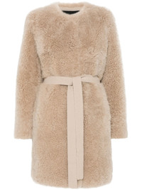 sesame beige shearling front hook and eye fastening round neck long sleeves two side inset pockets silk lining straight hem - Color: NEUTRALS - Made in: France - Designer Style ID: 25WYM51090MAAG A2048 Composition and care Lining Composition Silk: 100.0%, Outer Composition Lamb Fur: 100.0%
