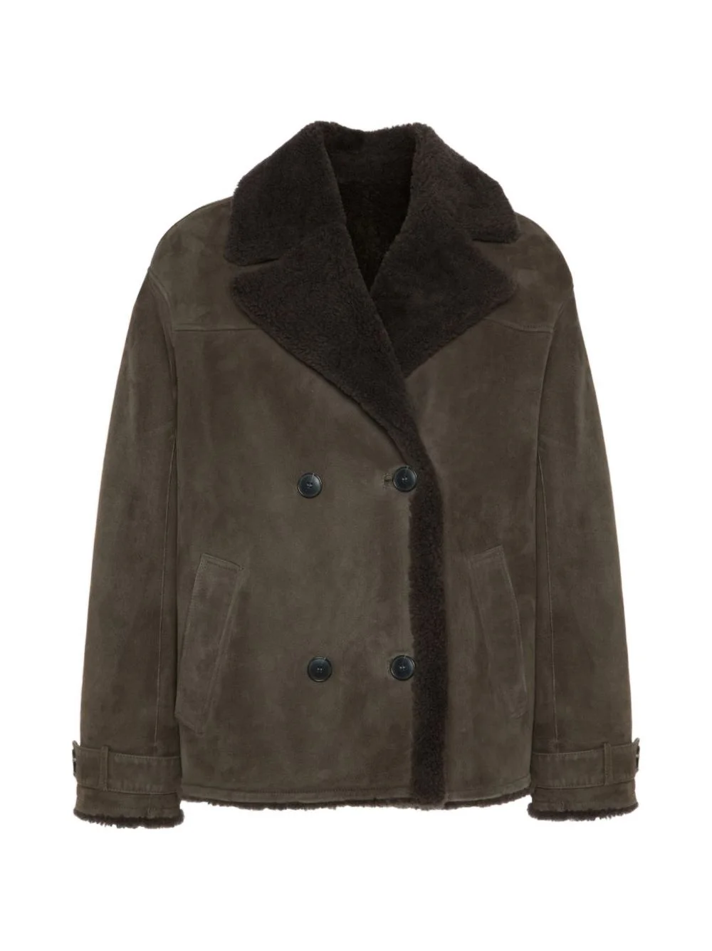 shearling jacket Highlights - Brown - Lamb shearling - Button fastening - Double-breasted - Notched lapels - Tabs cuffs Made in France Composition Outer: Lamb Shearling 100% Lining: Lamb Shearling 100% Washing instructions Read Manufacturer Guidelines