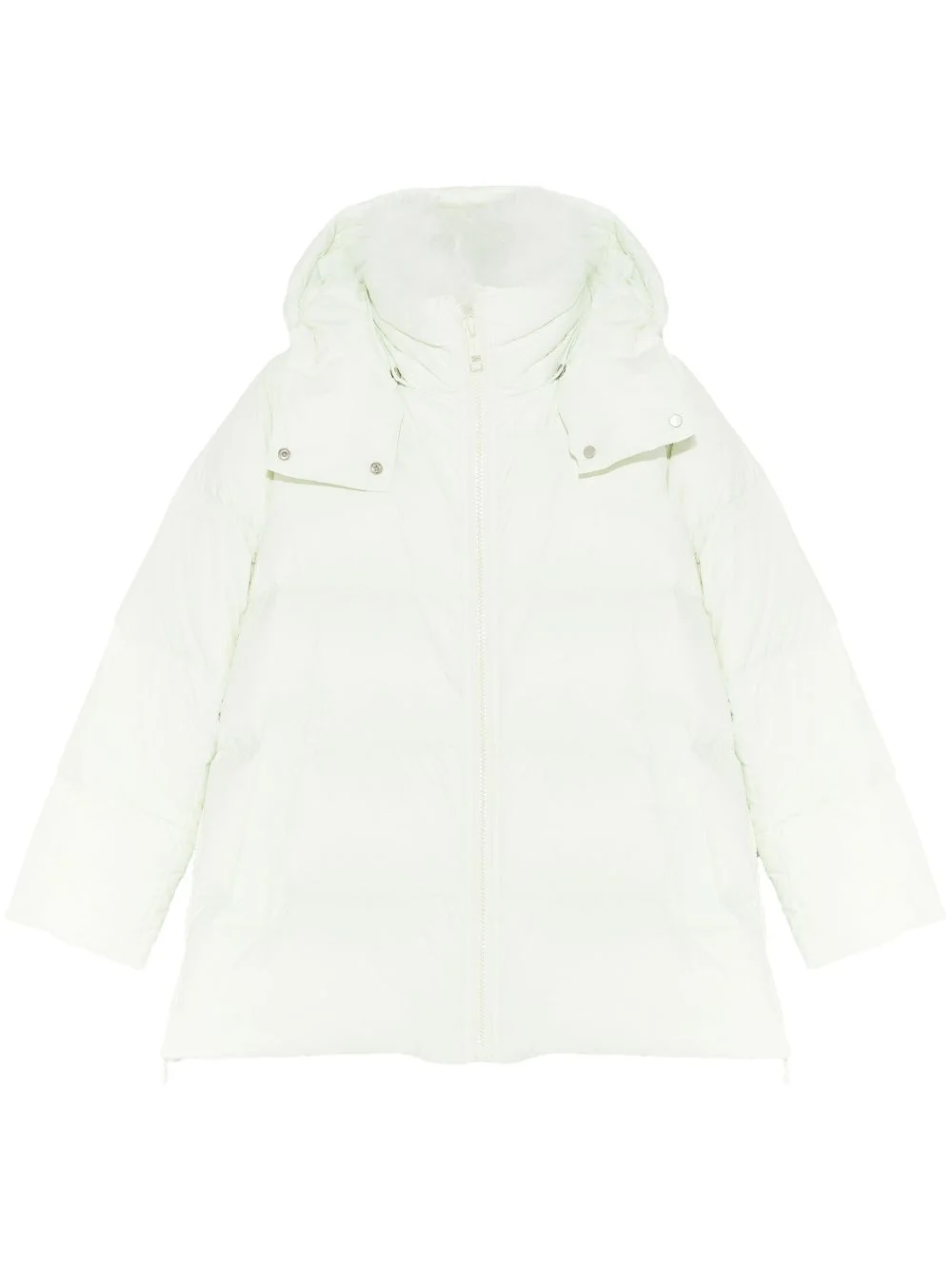 shearling-trimmed down jacket Highlights - Light green - Down-feather filling - Quilted - Water-repellent - Front zip fastening - Detachable hood - Stand-up collar - Shearling trim - Long sleeves - Two side welt pockets - Side slits - A-line - Straight hem Made in France Composition Outer: Polyamide 90%, Lambs Wool 10% Lining: Duck Down 95%, Duck Feathers 5%