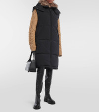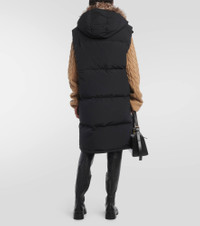 Inspired by vintage parkas found at flea markets, Yves Salomon's Army line is a perfect balance of performance and style. Showcasing a soft, shearling trimmed collar, this vest is crafted from an insulating technical fabric, and appears here in a long, padded form. Product Details - detachable fur-trimmed hood - Care instructions: machine wash at 30 degrees - Trim: 100% lamb fur - Comes with garment bag - Designer color name: Black - Closure: two-way zipped front - Filling: 90% down, 10% feathers - Pockets: snap-buttoned pockets - Made in France - Material: 26% cotton, 3% polyurethane, 71% polyamide - Item number: P00862575 Size & Fit - True to size - Loose fit, drawstring waist - Mid-weight material - The model seen in the picture is 178cm-5'10" and wearing a size FR 36