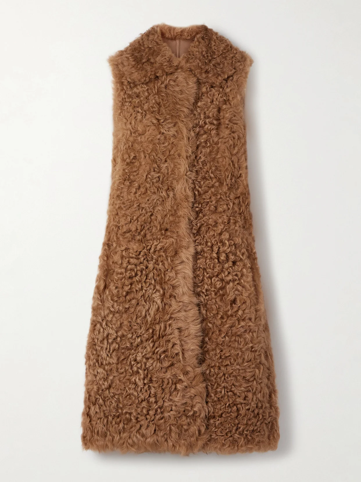 Yves Salomon's vest is made from fluffy shearling in a longline shape that'll keep you warm and cozy. It has a slightly loose fit and versatile camel shade that'll go with neutrals and bold colors alike.