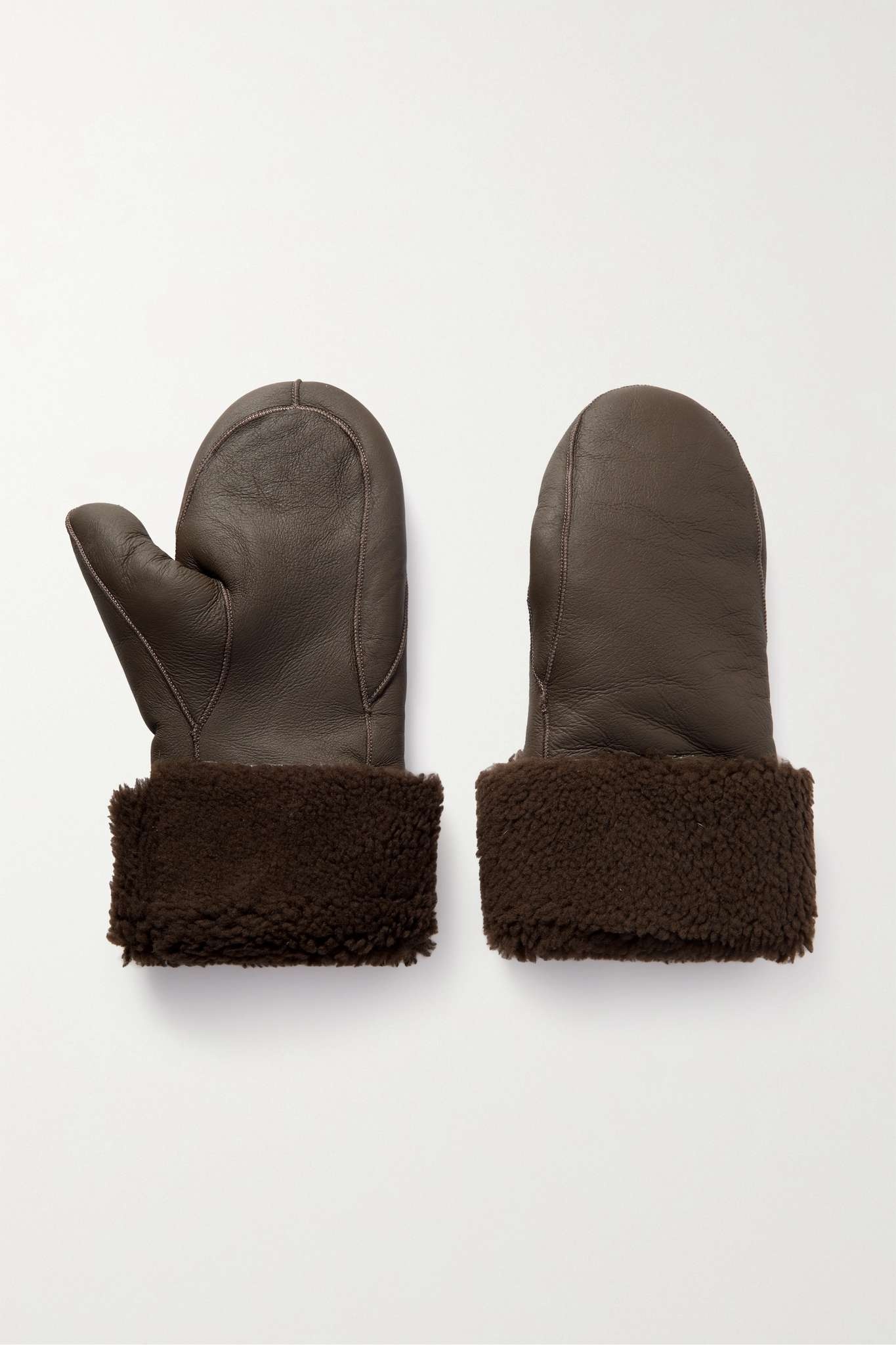EDITORS'NOTES Yves Salomon's mittens will keep your hands warm even when the temperature drops. They've been expertly crafted in France from supple shearling and have wide, fluffy cuffs. The classic brown shade will go with so many of your coats. SIZE & FIT This item’s measurements are: - Length: 28cm / 11in - Width: 17cm / 6.7in DETAILS & CARE - Brown shearling (Lamb) - 100% shearling - Specialist clean