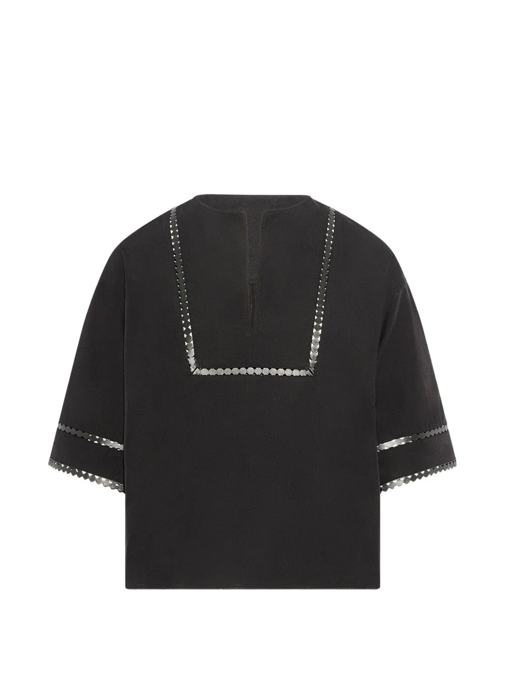 short-sleeve blouse Highlights - Black - Leather trim - Notch neck - Poplin weave - Short sleeves Made in France Composition pure cotton 95%, Lamb Skin 5% Washing instructions Read Manufacturer Guidelines
