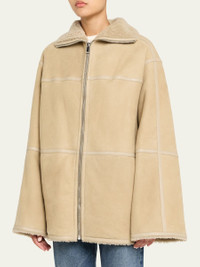 Crafted in supple suede and lined with soft dyed lamb shearling (Spain), this Yves Salomon jacket features lambskin leather trim for a refined silhouette. Stand collar Dropped shoulders Long sleeves Side pockets Loose fit Zip front Shearling Contains real fur Professional cleaning recommended Made in France Online Inquiries: BGS21_T8SC8| Store Inquiries: #5404279