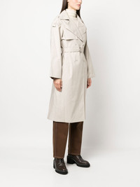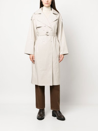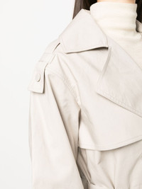 silk belted trench coat cream white silk-cotton blend oversized pointed collar notched lapels button fastening at the shoulder drop shoulder long wide sleeves double-breasted button fastening belted waist two side welt pockets straight hem below-knee length Made in France Composition Lining: Silk 100% Outer: Cotton 100%, Lamb Skin 100% SIZE & FIT Model measurements Height 5 ft 10 in(1.77 m) Bust/Chest 35.03 in(89 cm) Hips 35.03 in(89 cm) Waist 23.62 in(60 cm) FittingInformation This piece fits true to size. We recommend you get your regular size Cut for a loose fit. Comes with an adjustable belt for a flexible fit at the waist Made with a mid-weight non-stretch fabric Washing instructions Dry Clean Only