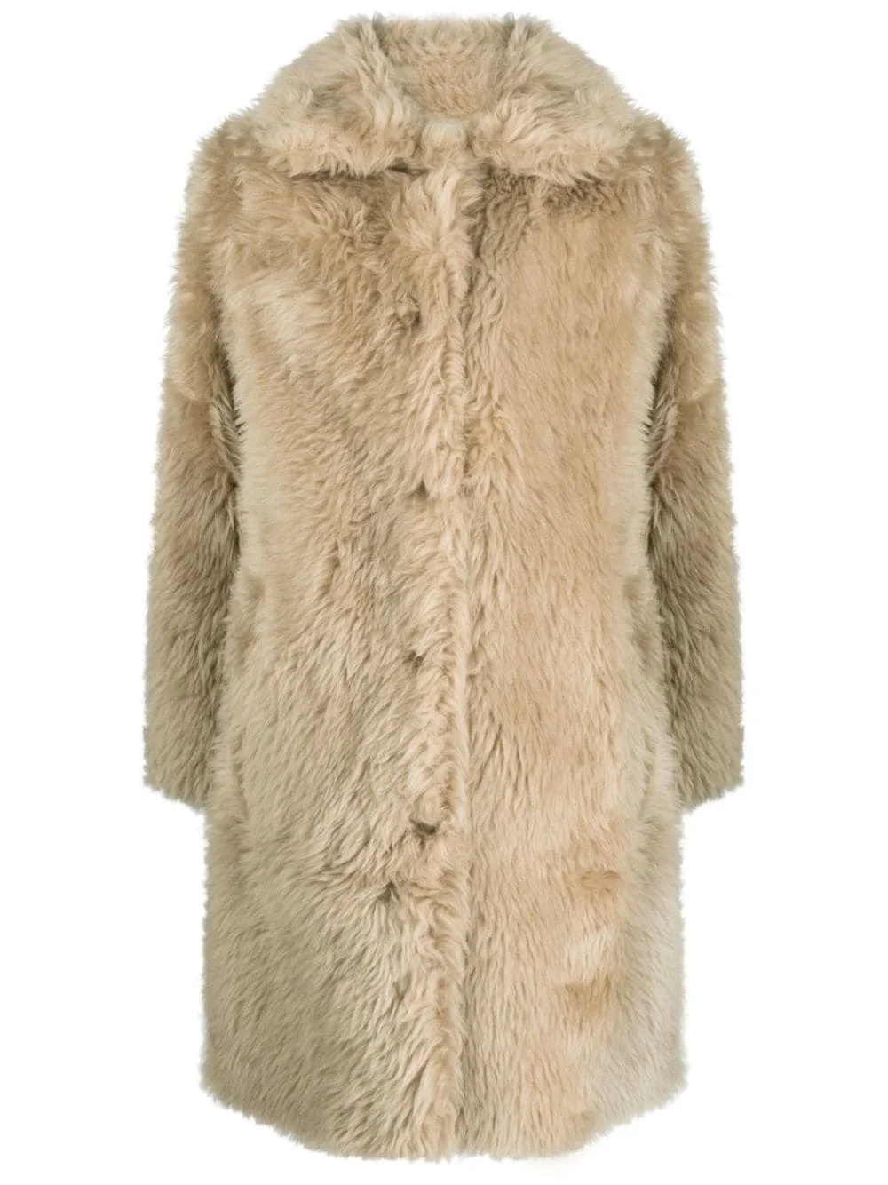 spread-collar faux-fur coat Highlights - Taupe - Wool/lyocell - Faux-fur design - Spread collar - Front button fastening - Two side inset pockets - Long sleeves - Elasticated cuffs - Straight hem - Above-knee length Made in France Composition Outer: Wool 100% Lining: Polyester 100%, Lyocell 100% SIZE & FIT Model measurements Height 5 ft 9 in(1.75 m) Bust/Chest 31.88 in(81 cm) Hips 33.85 in(86 cm) Waist 24.01 in(61 cm) FittingInformation Designed to be unstructured, offering a loose fit throughout Made from a midweight non-stretch fabric This piece fits true to size – take your usual size
