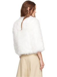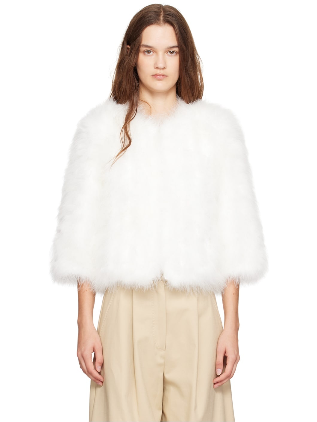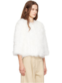 Turkey feather jacket. · Round neck · Hook-eye closure · Cropped hem · Seam pockets at waist · Three-quarter sleeve · Full silk satin lining Supplier color: Meringue Body: 100% turkey feather.