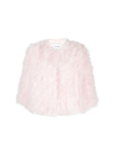 feather-trim jacket Combining the founder’s Russian heritage with a Parisian style aesthetic, Yves Salomon presents this jacket for its AW23 collection. Decorated with white feather trims, it is secured with a concealed front fastening. Highlights - Meringue white - Feather-trim detailing - Silk lining - Round neck - Concealed front fastening - Three-quarter length sleeves - Straight hem Made in France Composition Lining: Silk 100% Outer: Turkey Feather 100% SIZE & FIT Model measurements Height 5 ft 11 in(1.8 m) Bust/Chest 33.07 in(84 cm) Hips 37.4 in(95 cm) Waist 25.19 in(64 cm) FittingInformation This piece fits true to size. We recommend you get your regular size Cut for a loose fit Made with a lightweight non-stretch fabric Washing instructions Dry Clean Only