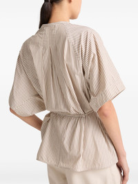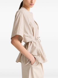 striped pleated poplin shirt light brown front button fastening short sleeves tied waist fully pleated Made in France Composition Cotton 100% Washing instructions Read Manufacturer Guidelines
