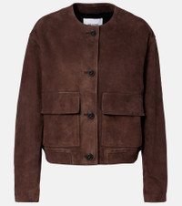 Rooted in a 100-year history, Yves Salomon's exquisite French craftsmanship produces winter wear that blends function and elegance. This jacket is made in France with suede and features a buttoned front and flap pockets. Product Details - Material: 100% lamb leather (suede) - Care instructions: specialist clean - Made in France - Designer color name: Cacao - Item color: brown - Lining: 57% viscose, 43% polybutylene terephthalate - Closure: buttoned front - Pockets: flap pockets - Hem: ribbed, elasticated - Fully lined - Item number: P01096419 Size & Fit - True to size - Dropped shoulders - Straight fit - Elasticated hem - Non-stretchy fabric - Slightly cropped - The model seen in the picture is 178cm-5'10" and wearing a size FR 36