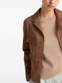 suede jacket Highlights - Camel brown - Front press-stud fastening - Front flap pockets - Notched lapels Made in France Composition Leather 100%