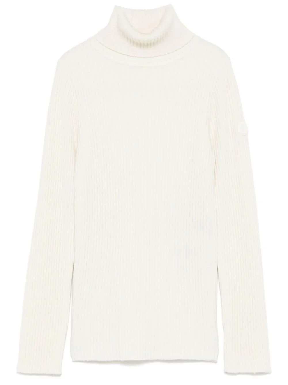 turtleneck sweater Highlights - Ivory white - Wool-cashmere blend - Ribbed knit - Roll neck - Long sleeves - Logo patch at the sleeve - Straight hem Imported Composition Wool 70%, Cashmere 30% SIZE & FIT FittingInformation Designed for a slim fit that sits just away from the body offering a close yet comfortable fit Made with a midweight knit, this piece offers some stretch