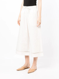 wide leg cropped trousers white cotton high waist elasticated drawstring waistband wide leg cropped Made in France Composition Cotton 100% SIZE & FIT Model measurements Height 5 ft 11 in(1.8 m) Bust/Chest 28.34 in(72 cm) Hips 35.43 in(90 cm) Waist 23.62 in(60 cm) FittingInformation This piece fits true to size. We recommend you get your regular size Designed to be fitted at the waist, loose over the leg Made with a mid-weight fabric Washing instructions Machine Wash