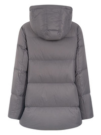 shearling padded coat Highlights - Charcoal grey - Faux-shearling lining - Padded design - Front press-stud and zip fastening - Classic hood - High neck - Two side welt pockets - Long sleeves - Straight hem Made in Italy Composition Outer: Polyamide 90%, Lambskin 10% Lining: Polyester 68%, Viscose 26%, Spandex/Elastane 6% Filling: Duck Down 95%, Duck Feathers 5% Washing instructions Read Manufacturer Guidelines
