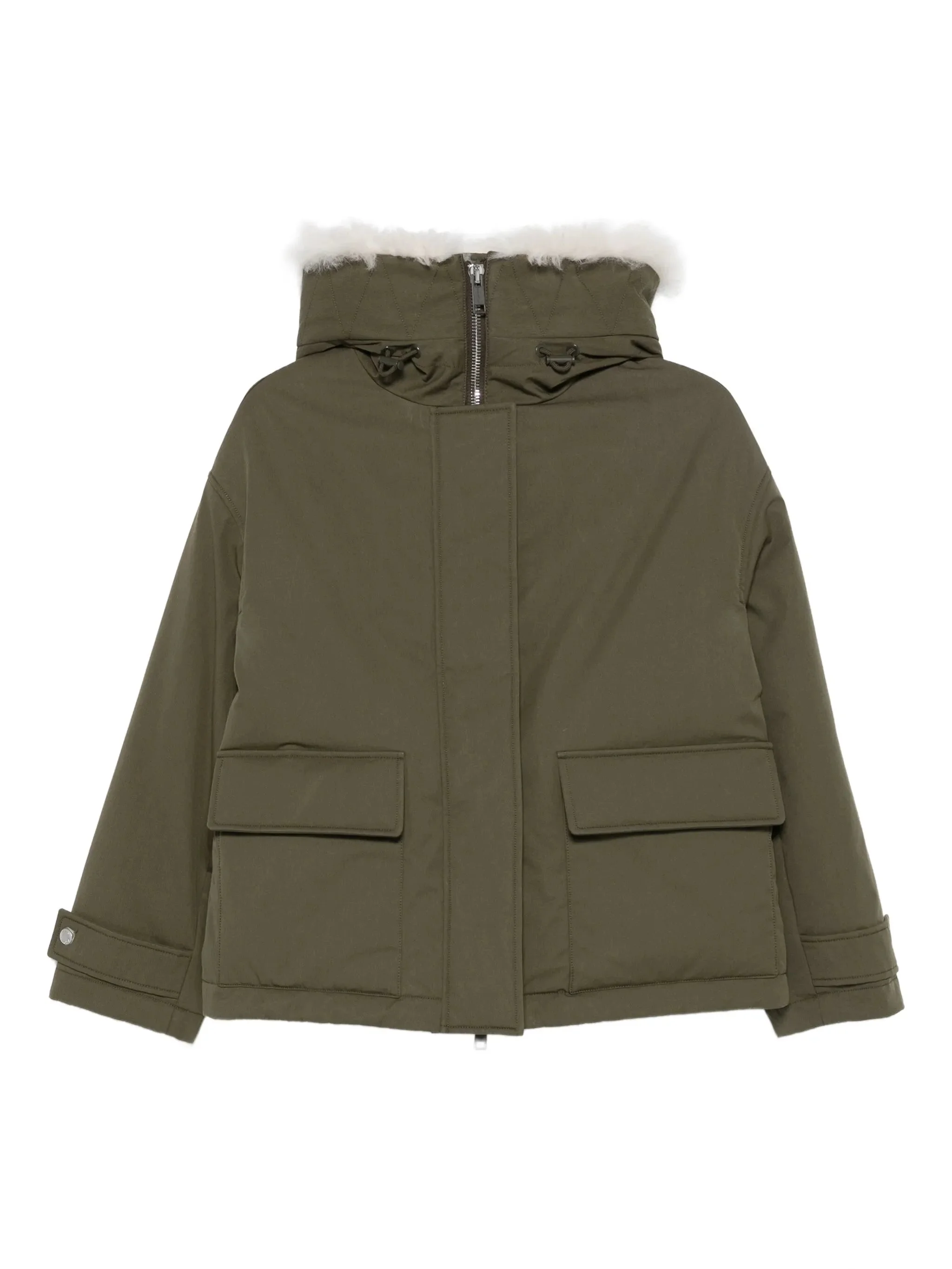 olive green faux fur-trimed hood zip fastening two-flap-patch pockets long sleeves buttoned cuffs - Color: GREEN - Made in: Bangladesh - Designer Style ID: 26WFV01462A06X B3225 Composition and care Outer Composition Fabric: 100.0%, Lining Composition Fur<>missing Info: 100.0%