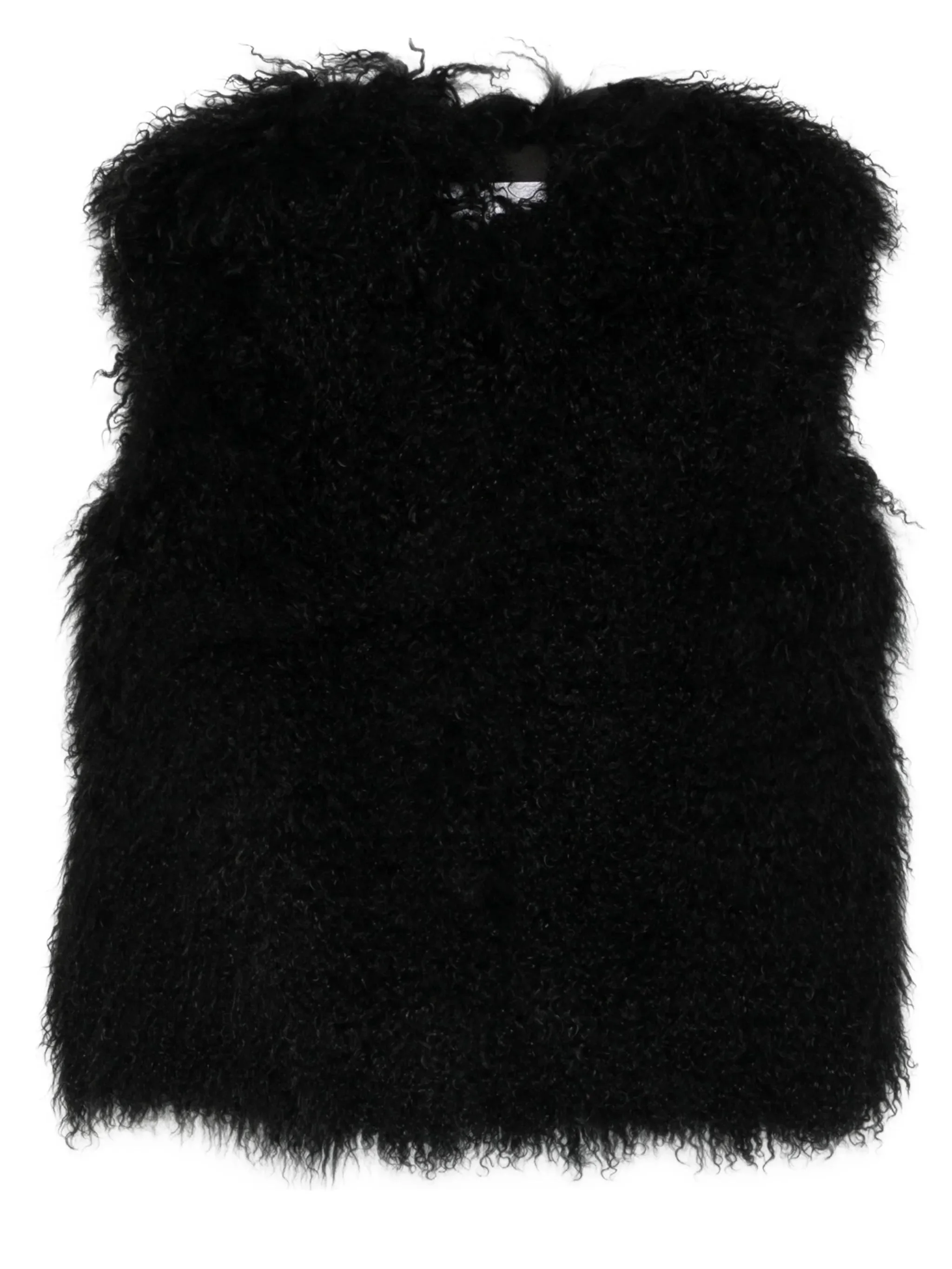 black curly fur sleeveless straight hem open front - Color: BLACK - Made in: Bangladesh - Designer Style ID: 26WYG62855AGMO C99 Composition and care Lining Composition Silk: 100.0%, Outer Composition Lamb Fur: 100.0%
