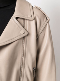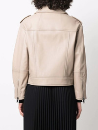 zip-up leather biker jacket beige lambskin front zip fastening long sleeves front flap pockets seam detailing Made in France Composition Lamb Skin 100% SIZE & FIT Model measurements Height 5 ft 10 in(1.79 m) Bust/Chest 31.88 in(81 cm) Hips 35.43 in(90 cm) Waist 23.62 in(60 cm) FittingInformation This piece fits true to size. We recommend you get your regular size Cut for a loose fit Made with a mid-weight fabric Washing instructions Specialist Cleaning