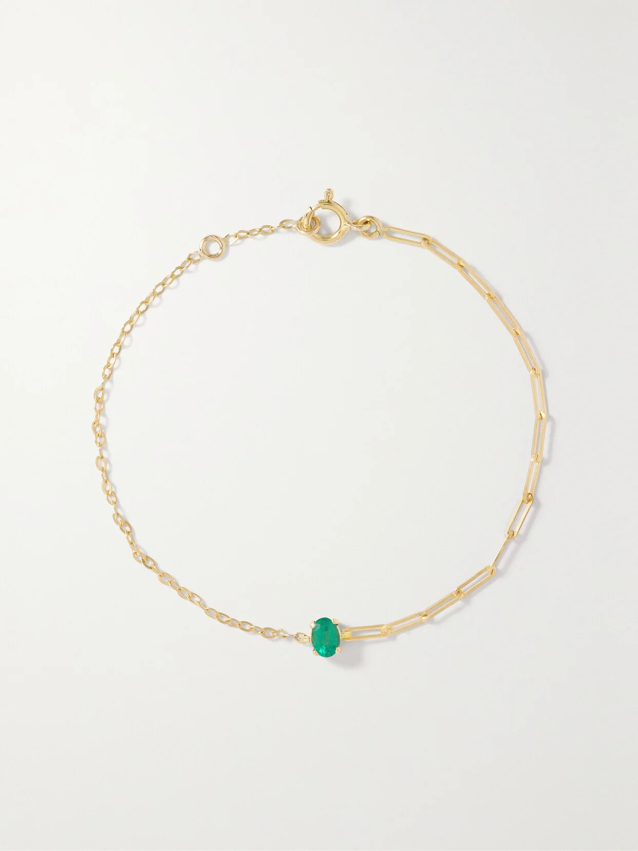 Yvonne Leon's designs are inspired by vintage styles but still feel undeniably modern. This bracelet is hand-crafted from 18-karat gold and has a stunning emerald centered between two mismatched chains. Layer it with similar pieces from the brand.