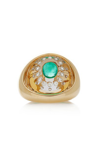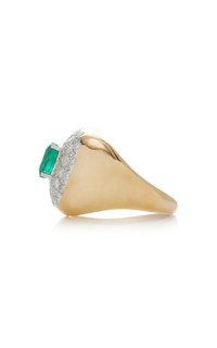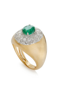 Drawing inspiration from France's unparalleled antiques and vintage markets, Paris-based jeweler Yvonne Léon pays tribute to the past while looking to the future with rebellious inflection. PRODUCT DETAILS - Composition: 18k yellow gold, emerald 1,1ct, grey diamonds 1ct - Imported - Please note the possibility of natural inclusions in gemstones