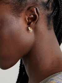 Yvonne Leon's earrings are reminiscent of charming styles you'd find at a market while on a tropical vacation. Cast in the shape of corkscrew seashells, these earrings are handmade from ridged 9-karat gold and dotted with round gray diamonds.