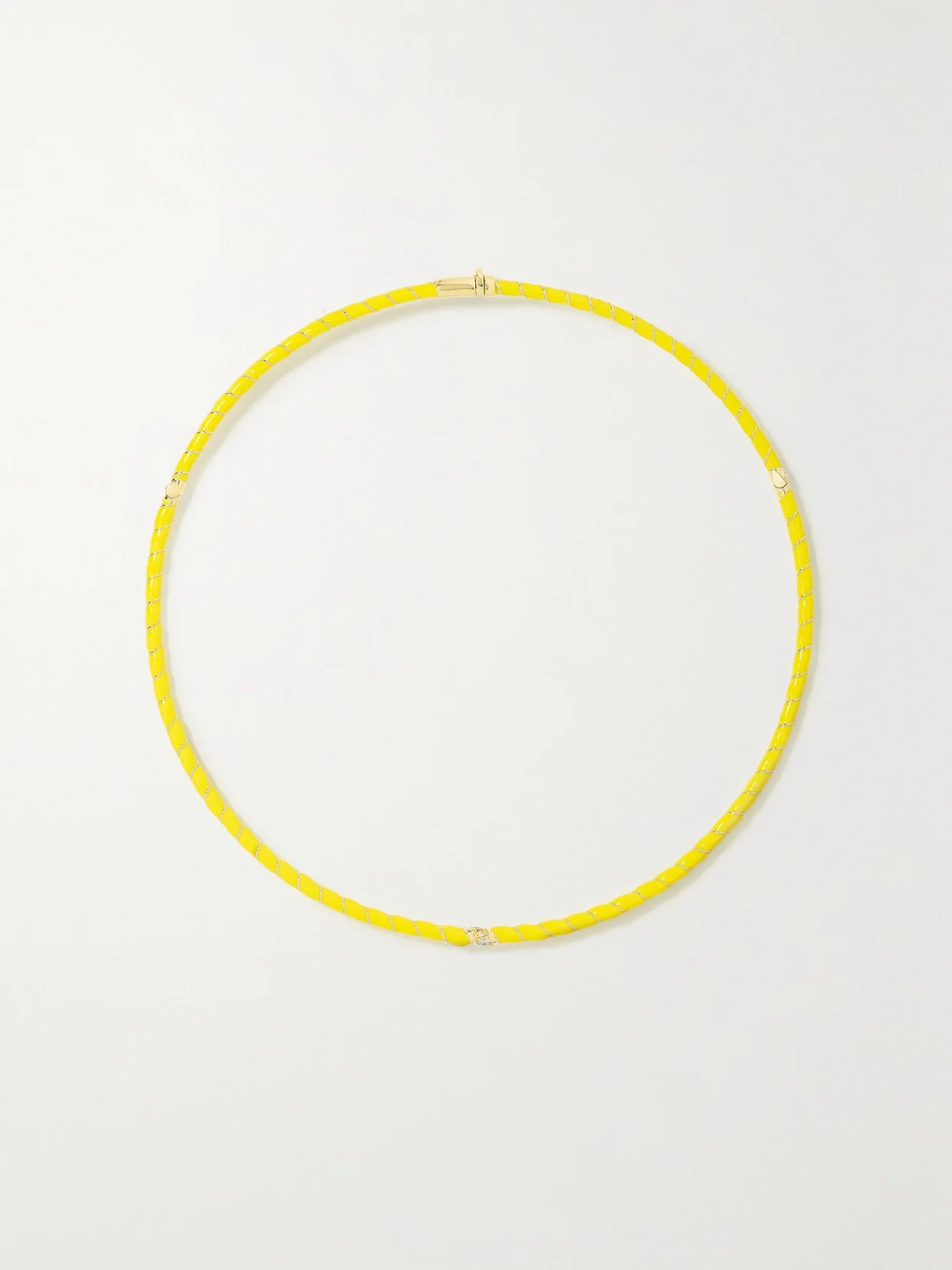 Each one of Yvonne Leon's pieces is inspired by items the designer finds at vintage markets and updated through her fresh, modern lens. Handmade from 9-karat gold, this necklace is coated with eye-catching neon enamel and highlighted by sparkling diamonds.