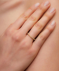 DETAILS Stacking ring 9ct gold Three tiny diamonds Textured band COMPOSITION & SIZE 9ct Gold; Estimated 0.01ct Grey Diamond