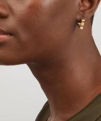 DETAILS Hoop earrings 9ct gold Ridged bamboo-inspired design Grey diamonds Inverted triangle silhouette Hinge clasp fastening COMPOSITION & SIZE 9ct Gold; Estimated 0.29ct Grey Diamond L: 1.5cm, W: 1.92cm (approx)