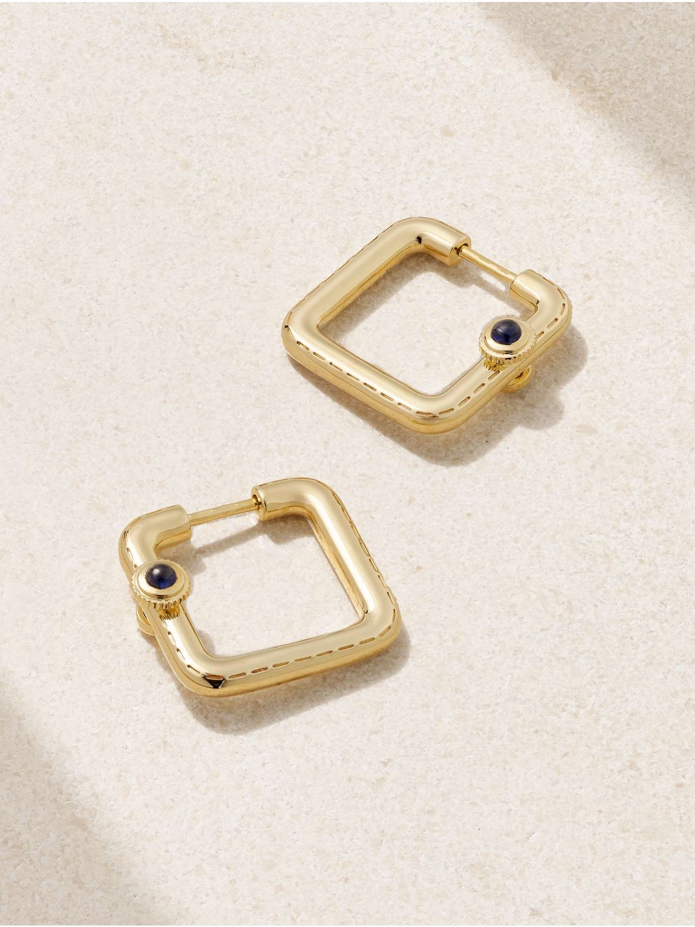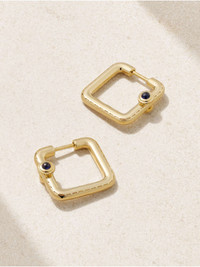 EDITORS'NOTES Yvonne Leon's earrings are part of the brand's 'Gousset' collection that's inspired by the craft of watchmaking. Handmade from 9-karat gold, they have geometric hoops topped with sapphire-encrusted gear-like settings meant to resemble traditional crowns. Single diamonds adorn the other side of the unique detail. SIZE & FIT This item’s measurements are: - Length: 2.3cm / 0.9in - Width: 2.3cm / 0.9in DETAILS & CARE - Sapphires, total weight: 0.46-carats; gray diamonds, total weight: 0.21-carats - Post fastening for pierced ears - This piece has been certified in accordance with the Hallmarking Act 1973