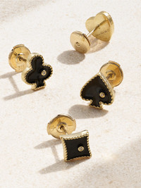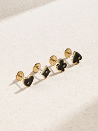 Play your cards right with Yvonne Leon's earrings. Cleverly designed to depict the four suits, they're handmade from 9-karat gold and inlaid with glossy black enamel and a sparkling gray diamond. Stack them on your lobe to reveal a winning hand. Details & Care - Gray diamond, total weight: 0.01-carats - Screw fastening for pierced ears - This piece has been certified in accordance with the Hallmarking Act 1973