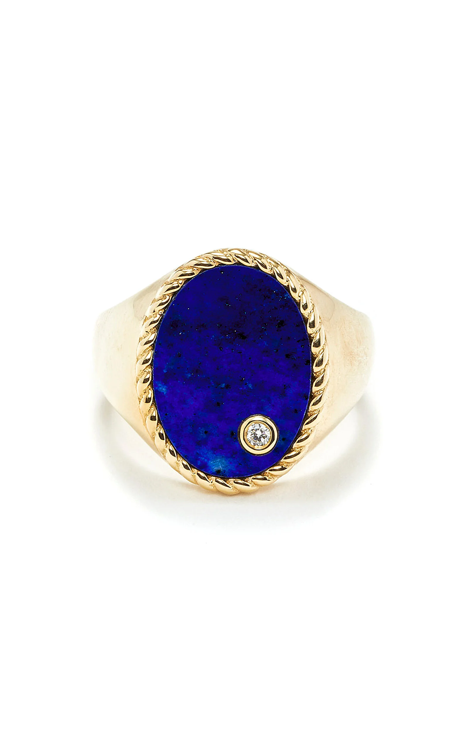 Drawing inspiration from France's unparalleled antiques and vintage markets, Paris-based jeweler Yvonne Léon pays tribute to the past while looking to the future with rebellious inflection. PRODUCT DETAILS - Composition: 9k yellow gold 3.5gr, lapis lazuli 1ct, diamond 0.015ct - Imported - Please note the possibility of natural inclusions in gemstones