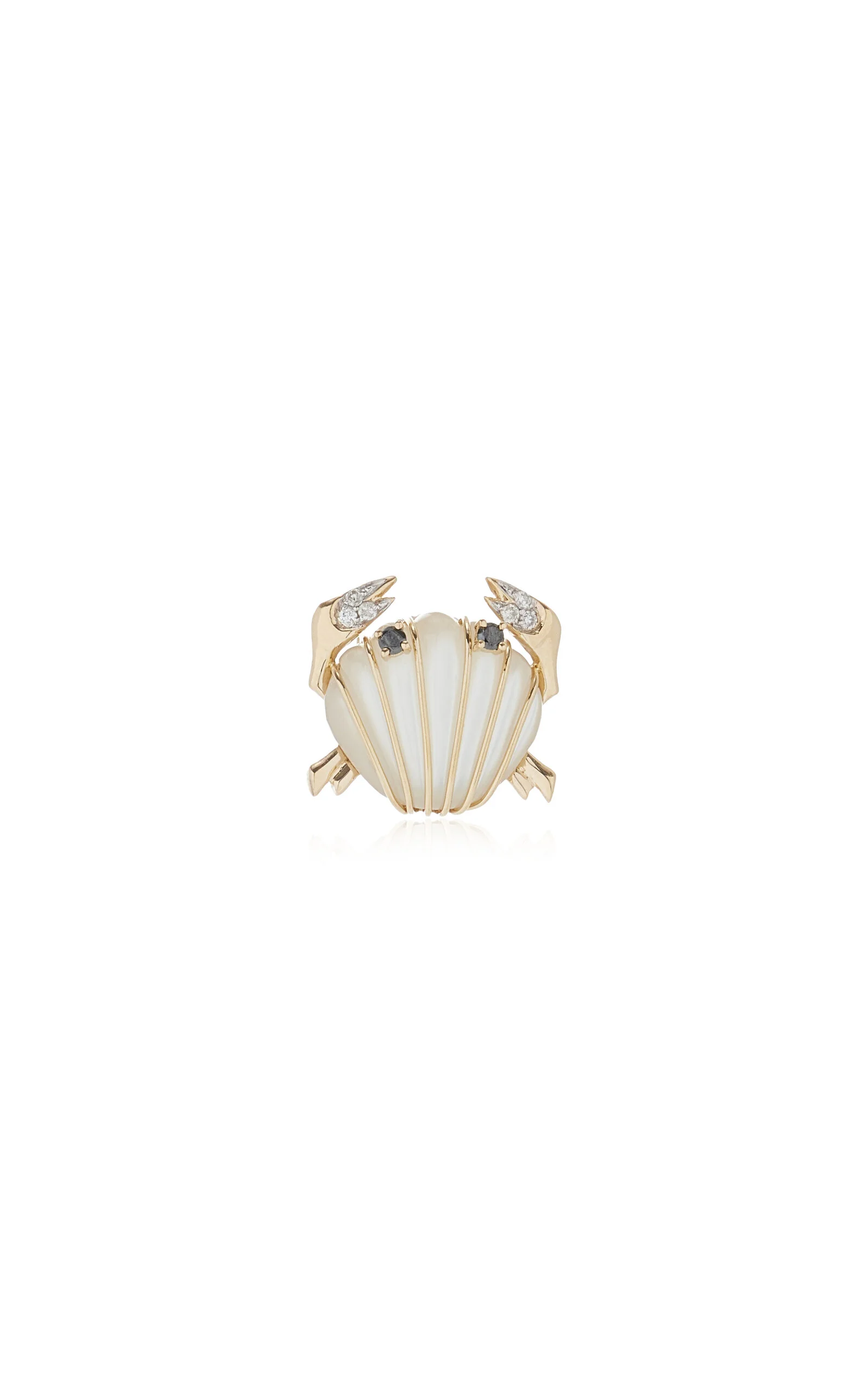 Drawing inspiration from France's unparalleled antiques and vintage markets, Paris-based jeweler Yvonne Leon pays tribute to the past while looking to the future with rebellious inflection. PRODUCT DETAILS - Post fastening for pierced ears - Composition: 9k yellow gold, mother of pearl 2,5ct, grey diamonds 0,02ct, black diamonds 0,02ct - Imported - Please note the possibility of natural inclusions in gemstones