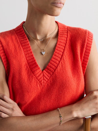 The heart charm on Yvonne Leon's necklace holds the dainty chains together, proving that love is the crux of the matter. It's hand-cast from 18-karat gold and dotted with tiny diamonds for a wash of sparkle. Wear it solo or stacked with shorter styles.