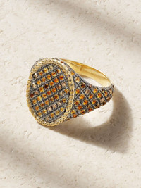EDITORS'NOTES Yvonne Leon's designs are inspired by vintage styles you'd find scouring a local flea market. Handmade from 9-karat gold, this ring is set with glowing citrines and brown diamonds in an oxidized setting that makes the intricately engraved wicker finish really pop. SIZE & FIT - US sizing - Measurements can be found in the link below DETAILS & CARE - Citrines, total weight: 0.41-carats; round-cut brown diamonds, total weight: 0.24-carats - This piece has been certified in accordance with the Hallmarking Act 1973