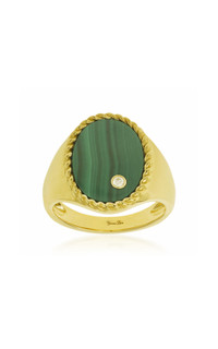 Drawing inspiration from France's unparalleled antiques and vintage markets, Paris-based jeweler Yvonne Leon pays tribute to the past while looking to the future with rebellious inflection. Cast from 9k yellow gold, this signet ring features a stunning malachite gemstone pave-set with a single white diamond. PRODUCT DETAILS - Composition: 9k yellow gold 3,5gr; malachite 1ct, diamond 0,015ct - Imported - Please note the possibility of natural inclusions in gemstones