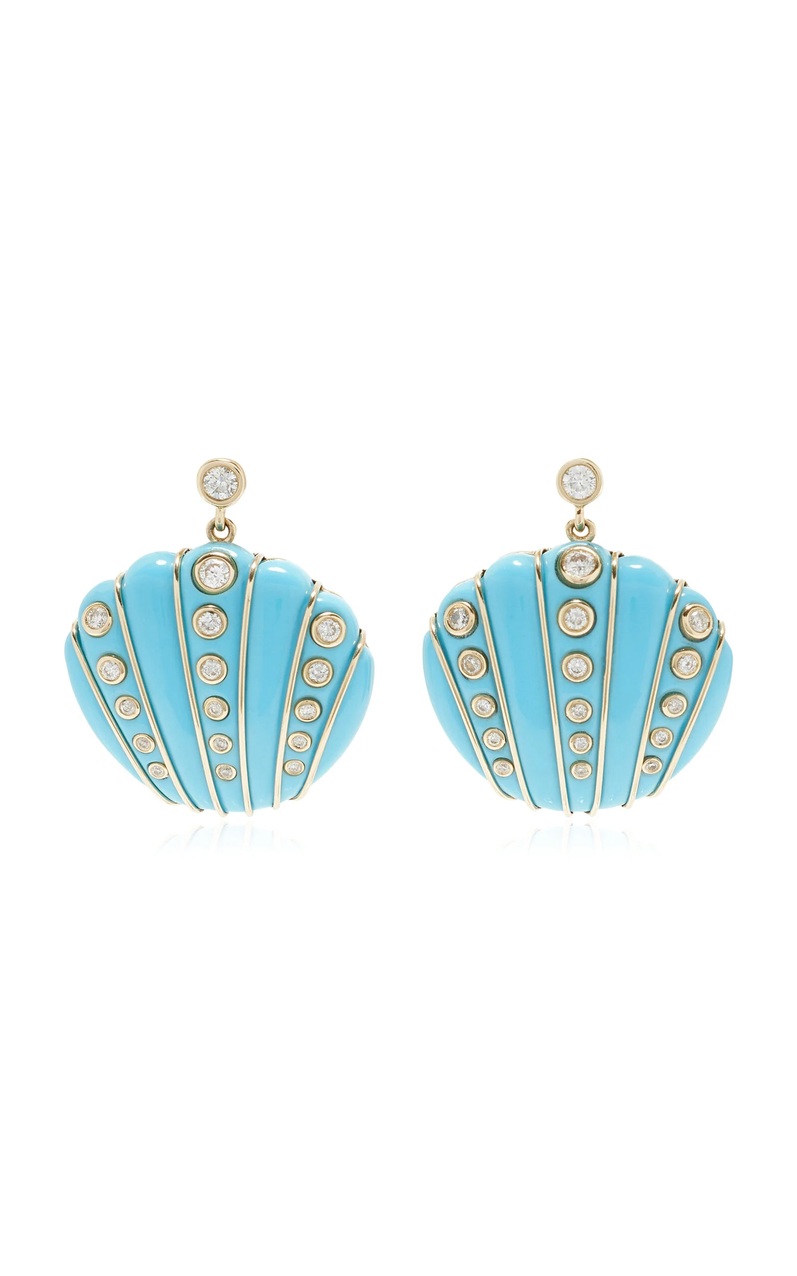 Exclusive Riviera 9K Yellow Gold Turquoise, Diamond Shell Earrings blue