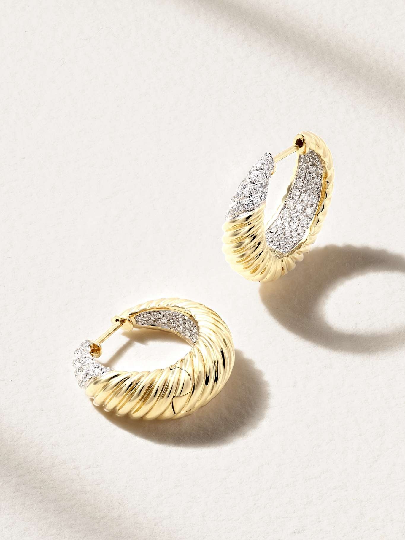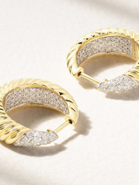 EDITORS'NOTES Yvonne Leon's earrings are set with diamonds along the front and inside of the hoop, ensuring they'll sparkle beautifully in the light. They're handmade from 18-karat gold and intricately engraved with ridges. SIZE & FIT This item’s measurements are: - Drop: 2cm / 0.8in DETAILS & CARE - Diamonds, total weight: 0.86-carats - Post fastening for pierced ears - This piece has been certified in accordance with the Hallmarking Act 1973