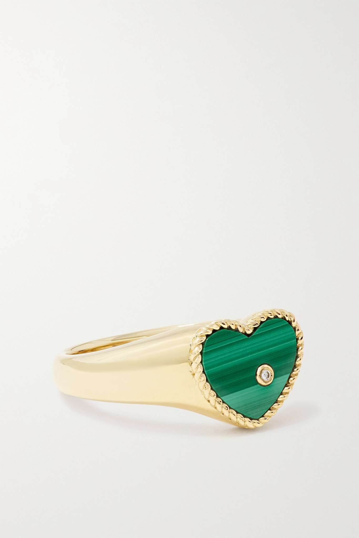EDITORS'NOTES Yvonne Léon draws inspiration from the Parisian women she has been surrounded by all her life, noting that they are drawn to colorful jewelry. Handmade from gleaming 9-karat gold, this ring has a 0.54-carat heart-shaped malachite dotted with a single diamond and held in a rope-effect setting. Wear it on your index or pinky finger. SIZE & FIT - US sizing DETAILS & CARE - Malachite, total weight: 0.54-carats; H diamond, total weight: 0.003-carats
