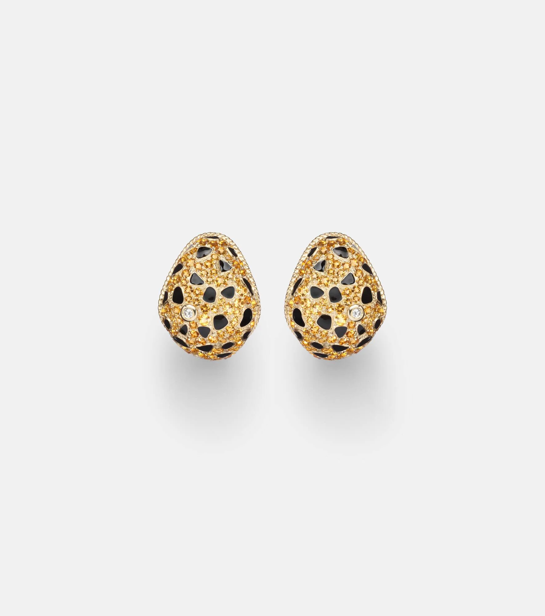 Lynx 9kt gold earrings with citrines, enamel, and diamonds