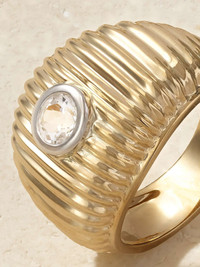 EDITORS'NOTES It's all about the shine with Yvonne Leon's ring, which is polished and fluted to enhance the luster. It's made from 9-karat gold in signet-esque proportions, and set with a centerpiece topaz. DETAILS & CARE - White topaz - This piece has been certified in accordance with the Hallmarking Act 1973