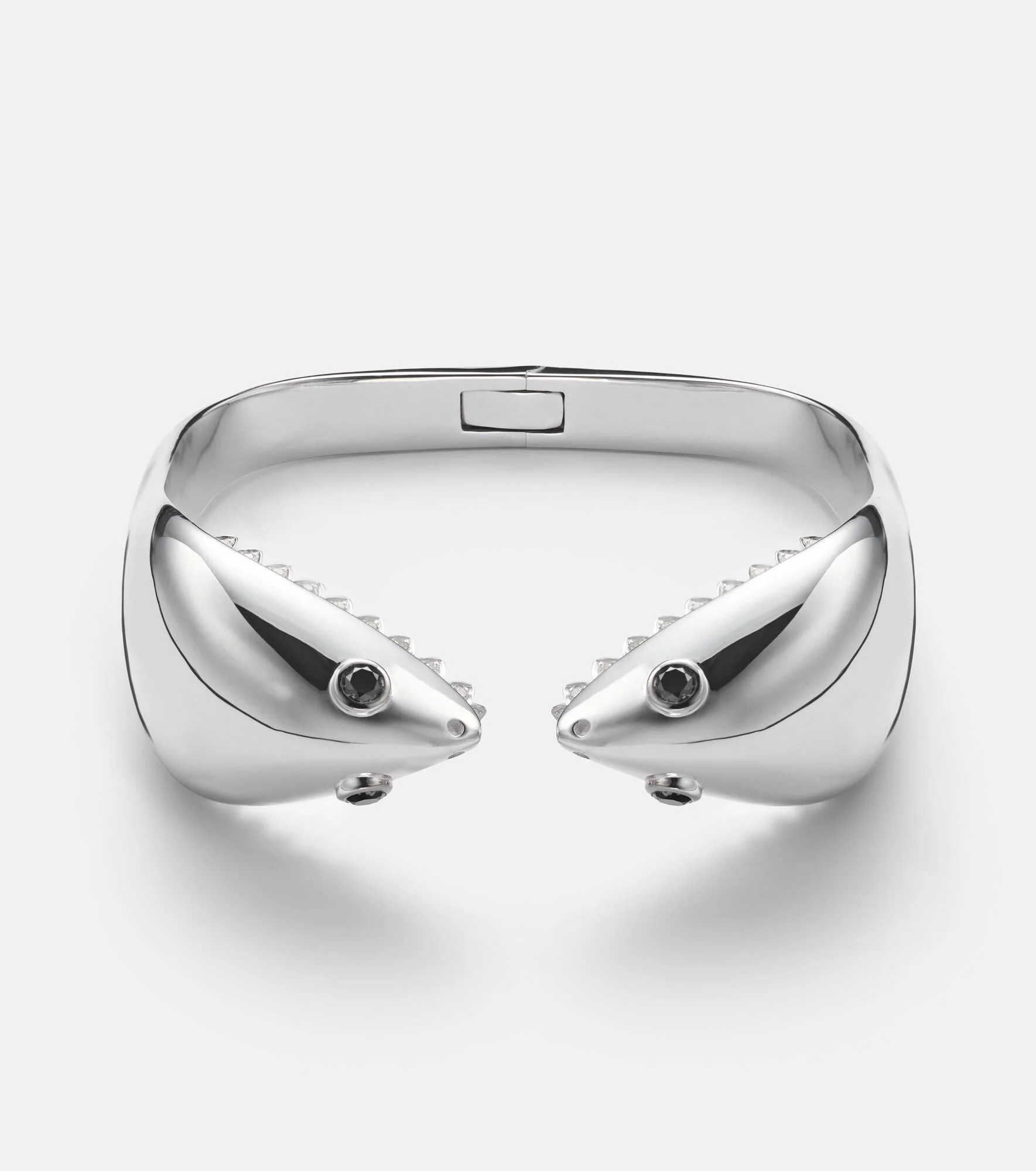 Bold, poetic, and modern: this is the essence of Yvonne Leon's fine jewelry. Crafted from 9kt white gold (375/1000), the Requin bangle features a spiral design embellished with 0.63ctw of round-cut diamonds. Product Details - Material: 9kt white gold (375/1000) - Made in France - Stone I: diamonds, round-cut, prong setting, G color grade, H color grade, I clarity grade - Color: silver - Carat total weight (ctw): 0.63 - diamond - Item number: P01141461
