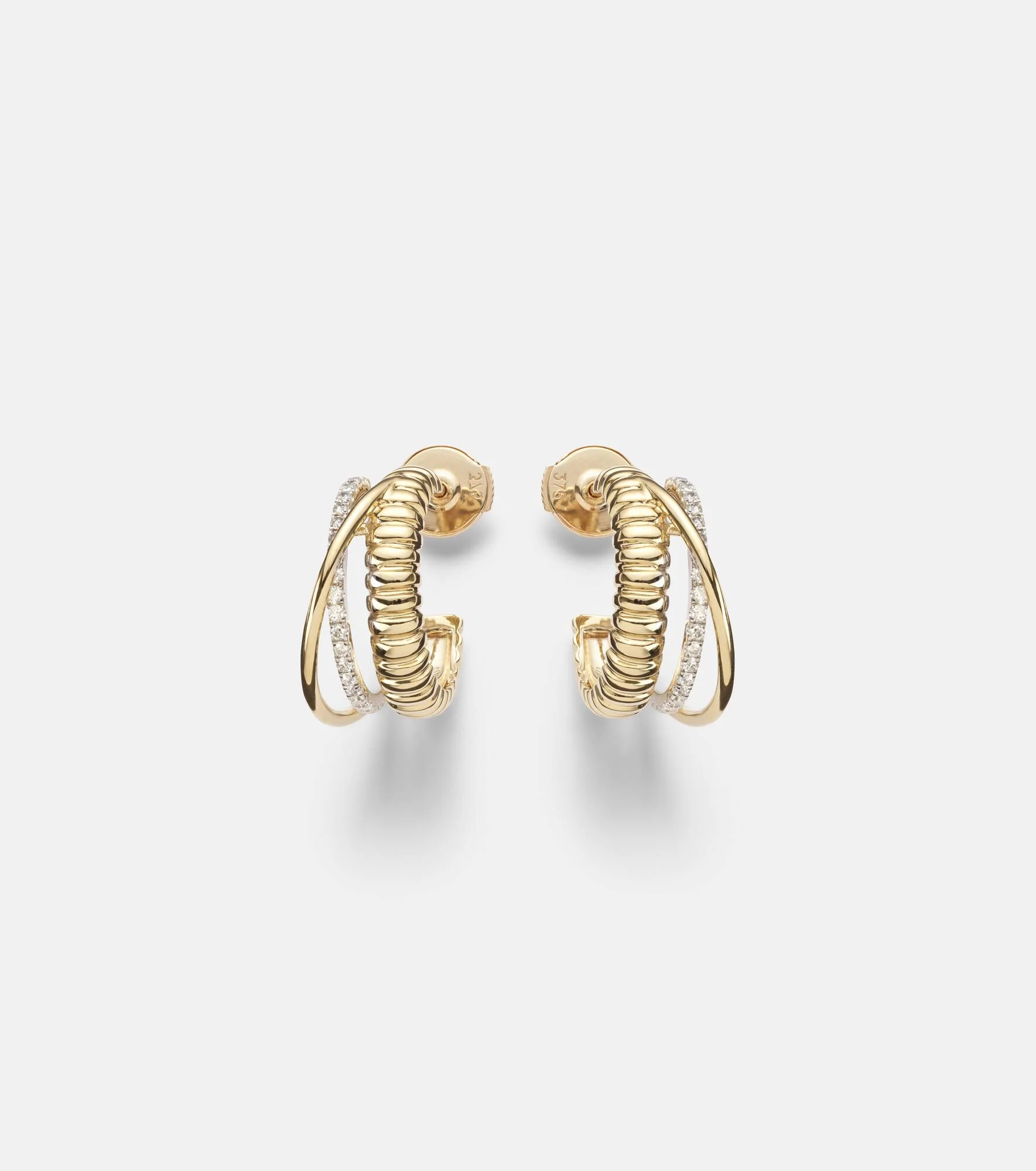 Un Deux Trois Berlingot 9kt gold hoop earrings with diamonds
