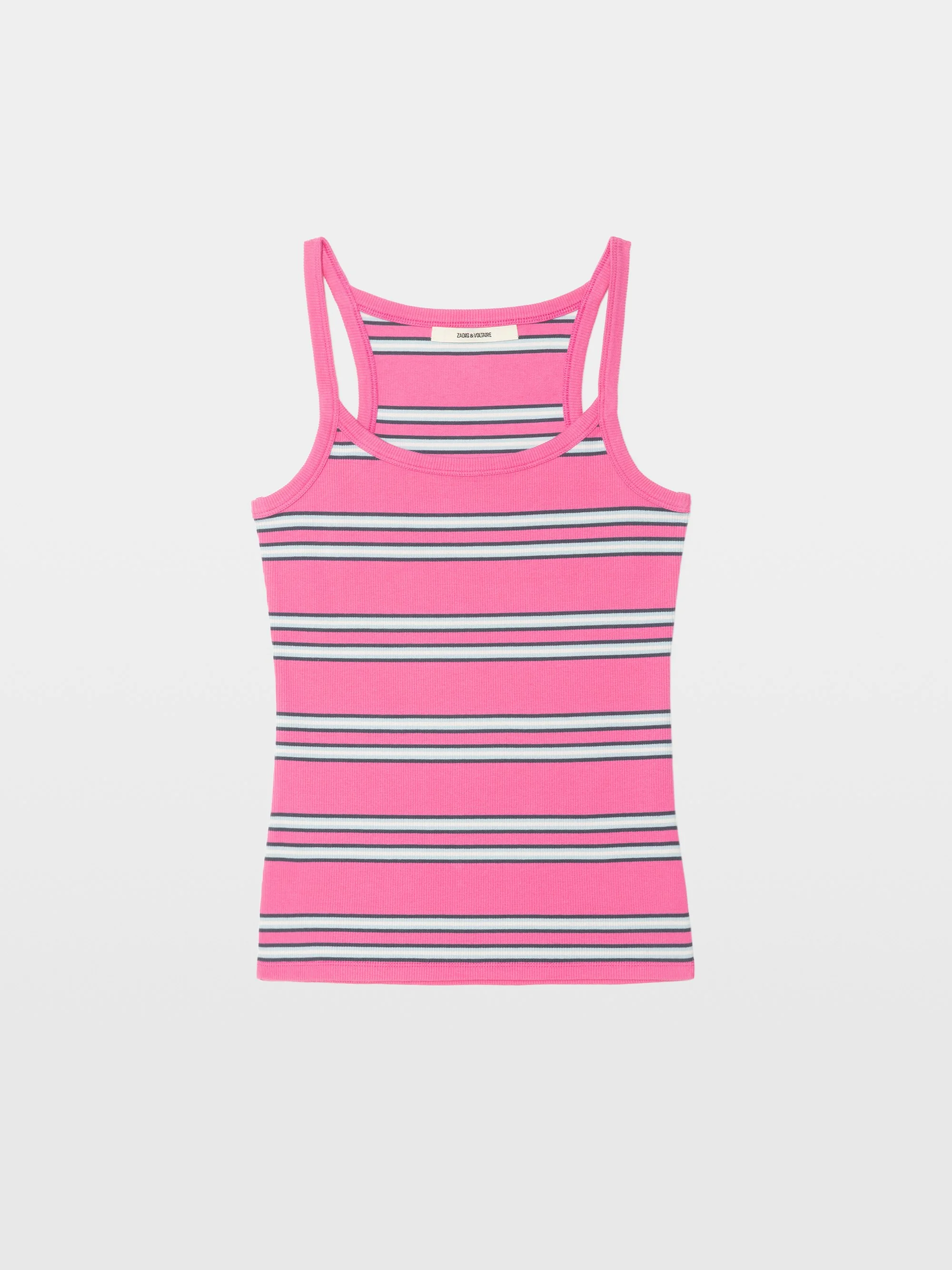 Striped sleeveless crew-neck T-shirt. Description & details - Sleeveless T-shirt in 100% cotton - Stripes - Crew neck Model is 178 cm / 5' 10" and is wearing a size S This item has a fitted cut. If you are between sizes or prefer a looser fit, go for one size up. Composition 97% Cotton* 3% Elasthanne Care - Machine-wash inside out on a 30°C delicate cycle with similar colours - Air dry - Iron inside out at a maximum of 110°C, avoiding any customised details Product code: JWTT01297_LADY