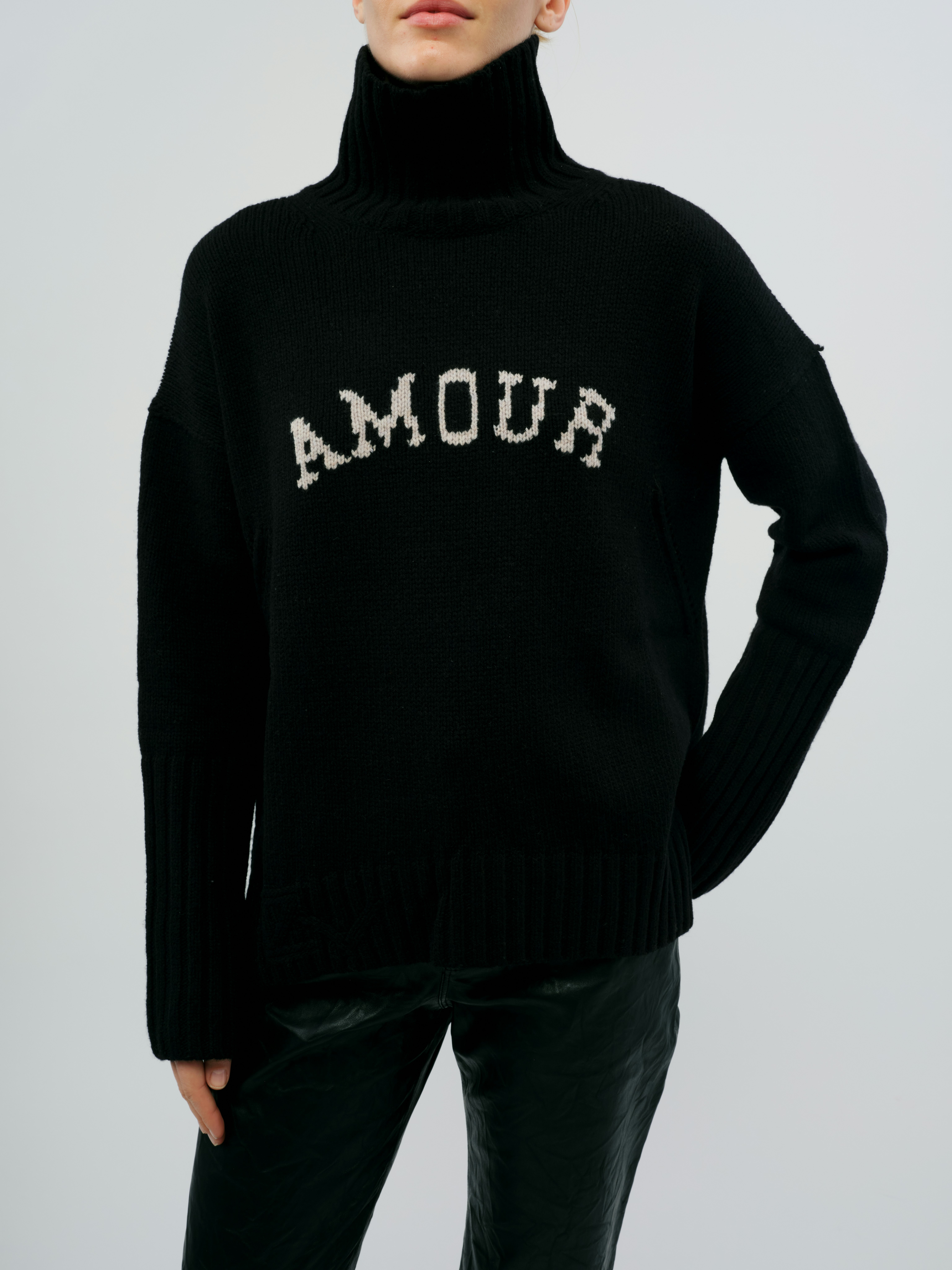 Soft sweater with “Amour” motif. Description & details Soft sweater with “Amour” motif. This item has a loose fit. For a more fitted look, choose one size down from your usual size. Composition 100% Merino wool* Product code: KWSW02953_BLACK